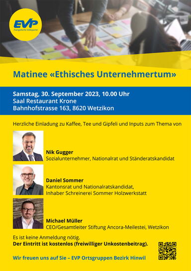 Die EVP Bezirk Hinwil lädt ein zu einer Matinee: